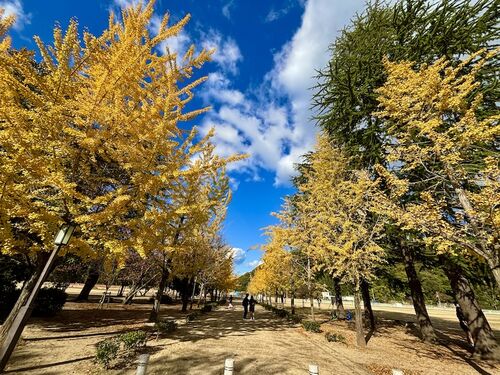 今年の紅葉は遅れていましたが・・ やっと銀杏並木が色づきました。